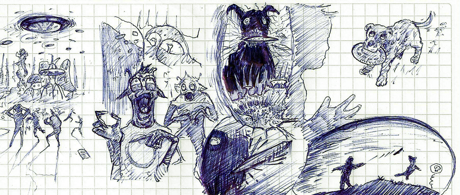 Estractos del cuaderno de notas de un estudiante poblado por garabatos y otras alimañas.